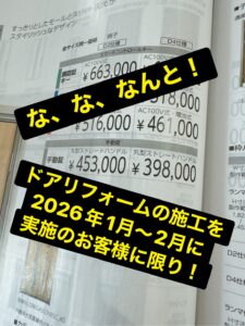 ✅ 今回はドアリフォームの“施工費・諸経費が半額”の特別レアなキャンペーン!