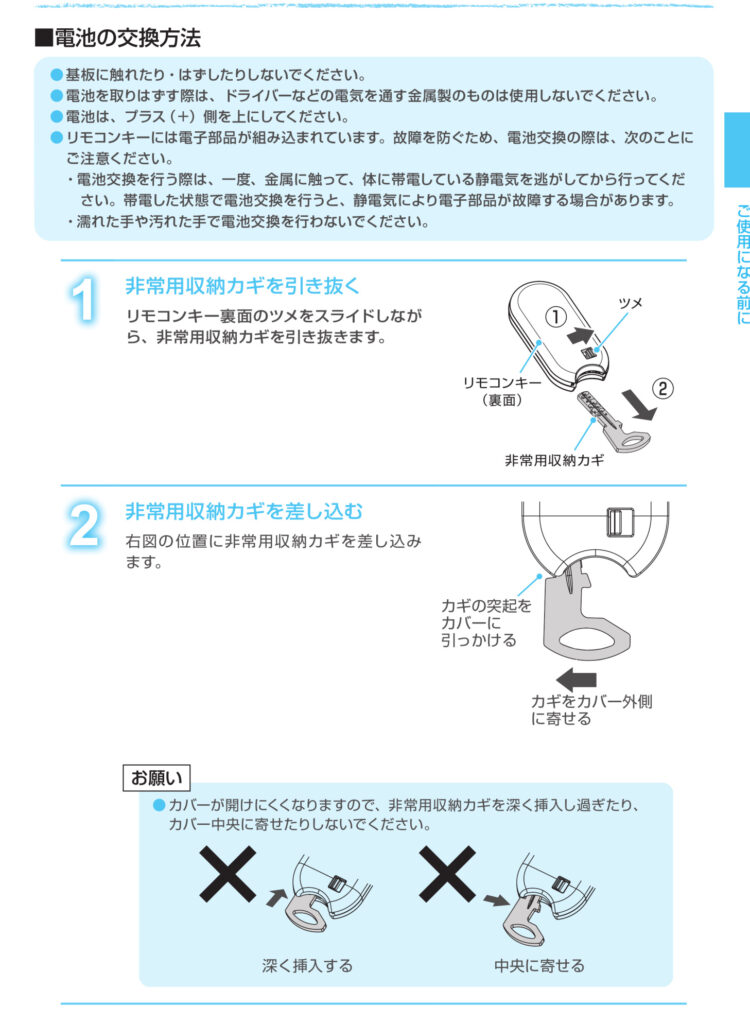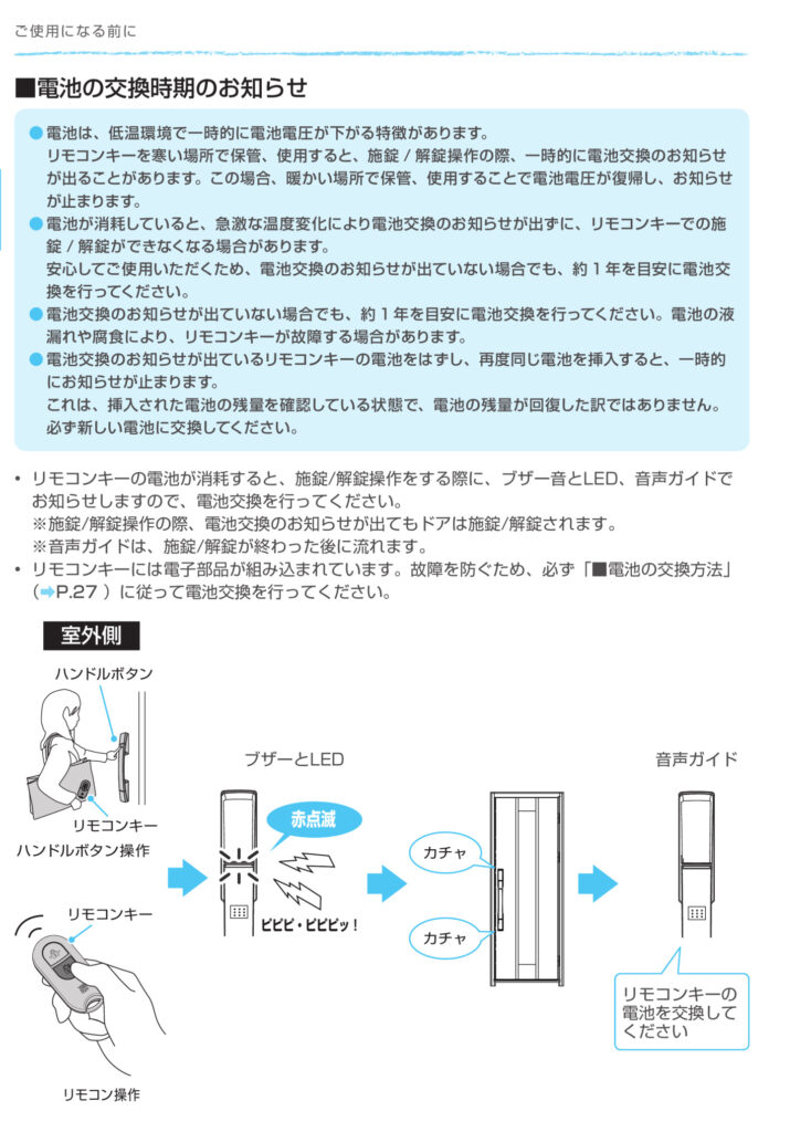 以下、取扱説明書の電池交換に関するページを掲載します。
