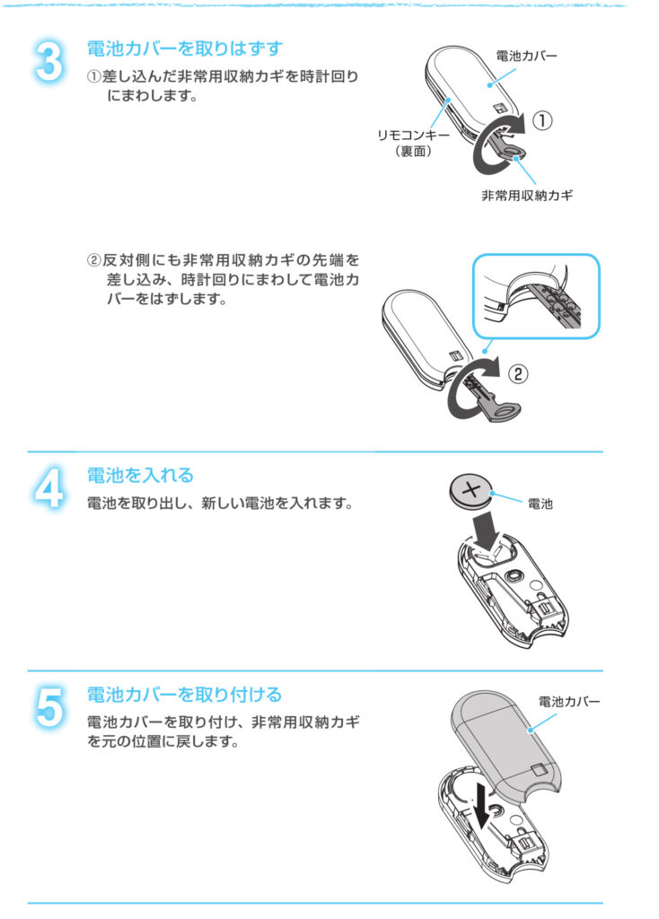 リモコンキーの電池が完全に消耗すると、リモコンキーによる施錠/解錠ができなくなります。