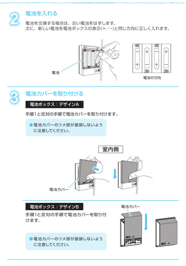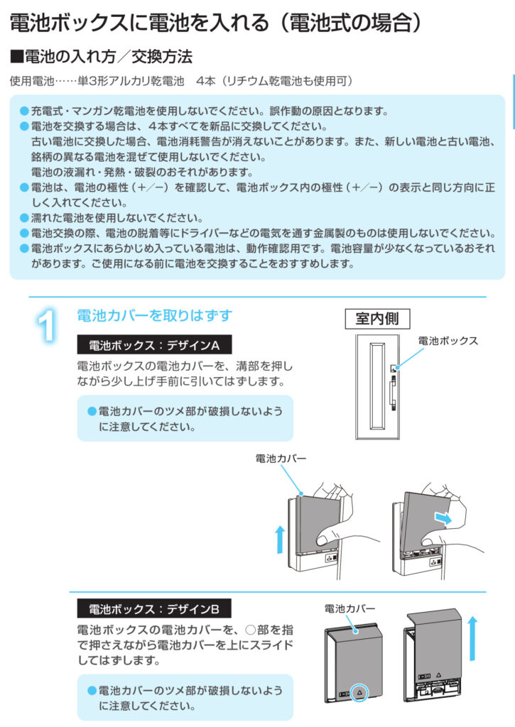 電池ボックス(ドア本体側)の電池交換時期と交換方法