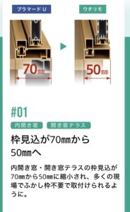 従来70mm必要だった枠見込が 50mmに縮小。