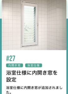 ⑥ 浴室内窓に「うち開きタイプ」新登場