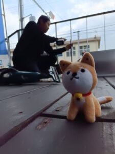 寒空の中、掲示板取付を ”玄之介” と見守りました。