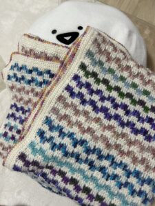 単色の毛糸とグラデーションウールを交互に編んでカラフルに完成★
