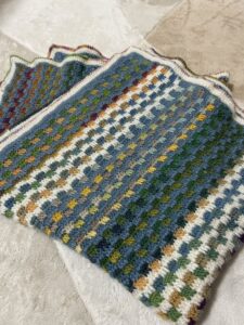 単色の毛糸とグラデーションウールを交互に編んでカラフルに完成★