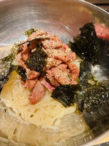 駅直結の大型商業施設 NEWoMan Takanawa(複数階にレストランやゆっくり買い物したくなるおしゃれなショップたちが!)にある焼肉たかなわで「炙りユッケのごま冷麺」を食べ腹ごしらえ。