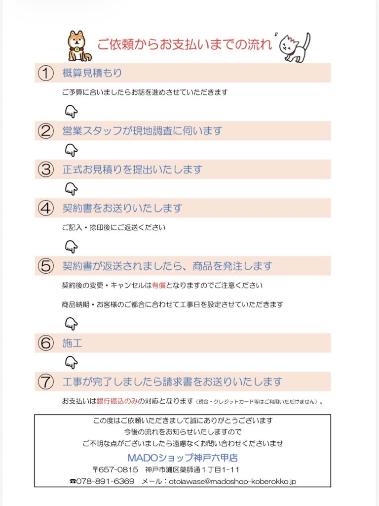 今回は、改めましてお問い合わせから施工・お支払いまでの流れをわかりやすくご紹介します。