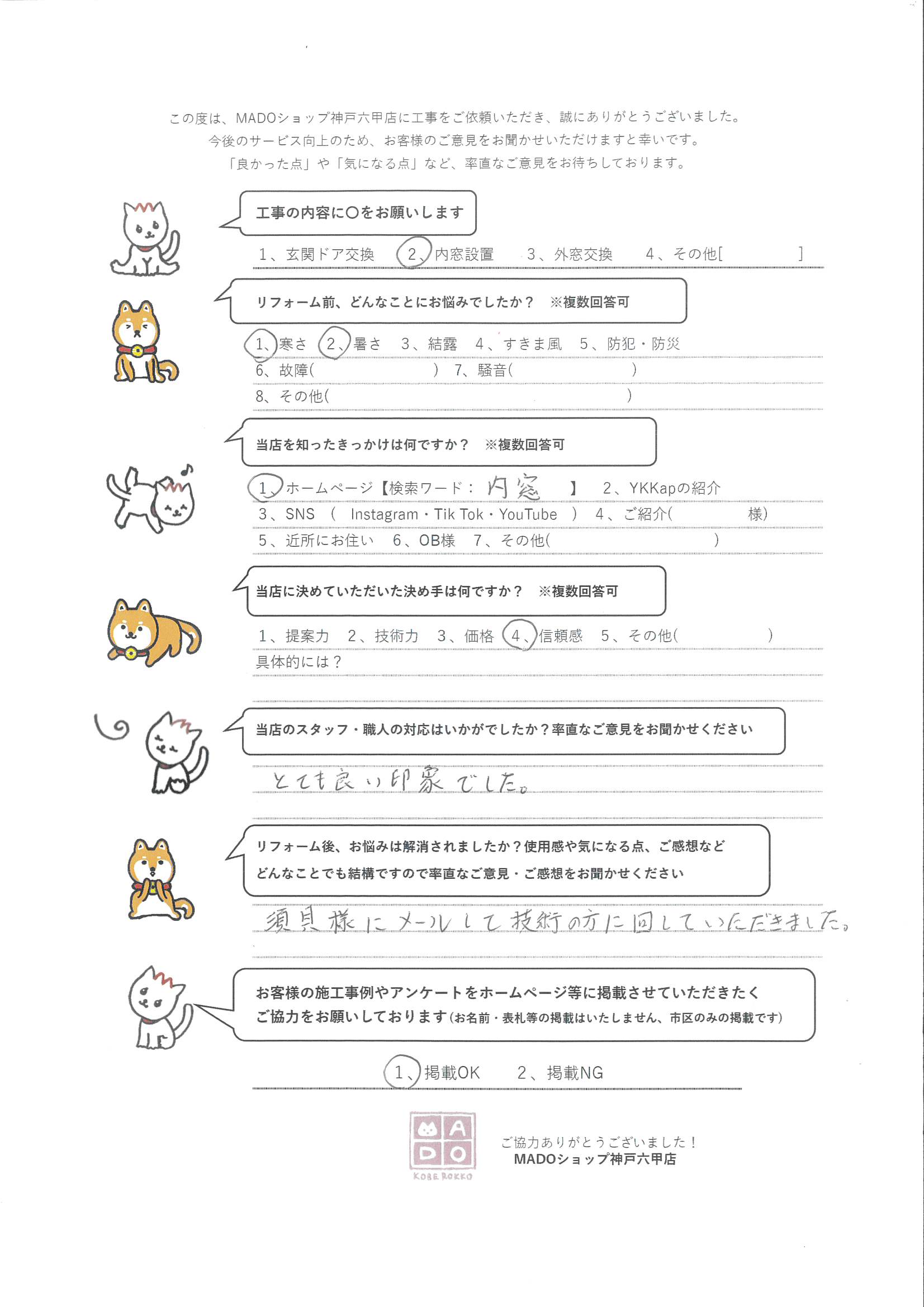 芦屋市 リビングの大きな4枚建て窓でもプラマード◎~お客様の声~ スタッフ・職人は「とても良い印象でした」(アンケートより) 工事の内容 内窓設置 リフォーム前、どんなことにお悩みでしたか? 寒さ・暑さ 当店を知ったきっかけは何ですか? ホームページ【検索ワード:内窓】 当店に決めていただいた決め手は何ですか? 信頼感 当店のスタッフ、職人の対応はいかがでしたか?率直なご意見をお聞かせください。 とても良い印象でした ORDER このお客様の施工内容 39万円(税込) 大きな窓にこそ、内窓を!快適さが超実感できます♪ 防犯施工箇所から選ぶ内窓補助金活用 前の記事 次の記事 一覧へ戻る