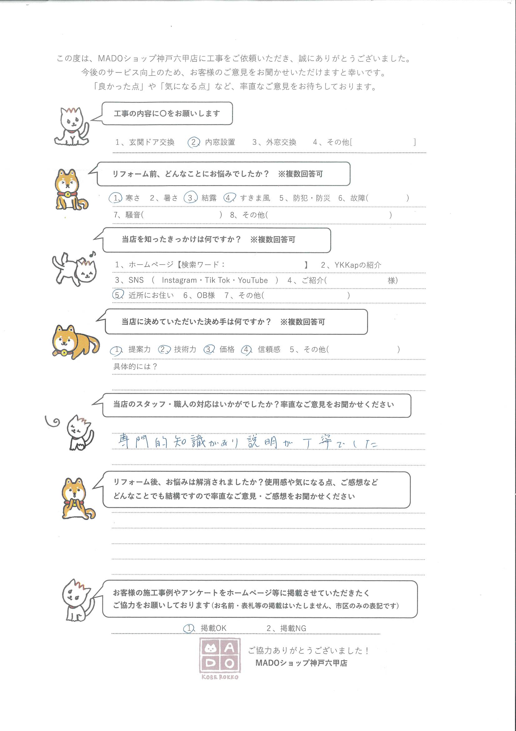 神戸市灘区 内窓(インプラス・プラマードU)で断熱。そして、ハニカムスクリーンも。~お客様の声~ 「専門的知識があり説明が丁寧でした」アンケートより ●工事の内容: 内窓設置、ハニカムスクリーン設置 ●リフォーム前、どんなことにお悩みでしたか? 寒さ、結露、すきま風 ●当店を知ったきっかけは何ですか? 近所にお住まい ●当店に決めていただいた決め手は何ですか? 提案力、技術力、価格、信頼感 ●当店のスタッフ・職人の対応はいかがでしたか?率直なご意見をお聞かせください。 専門的知識があり説明が丁寧でした ORDER このお客様の施工内容 21.9万円(税込) 防犯施工箇所から選ぶ勝手口内窓補助金活用 前の記事 一覧へ戻る