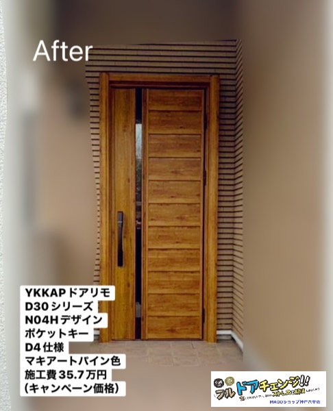 デザイン面でも、マキアートパイン色が外観に自然に馴染み、玄関の印象が明るくなった点もご満足いただけました。
